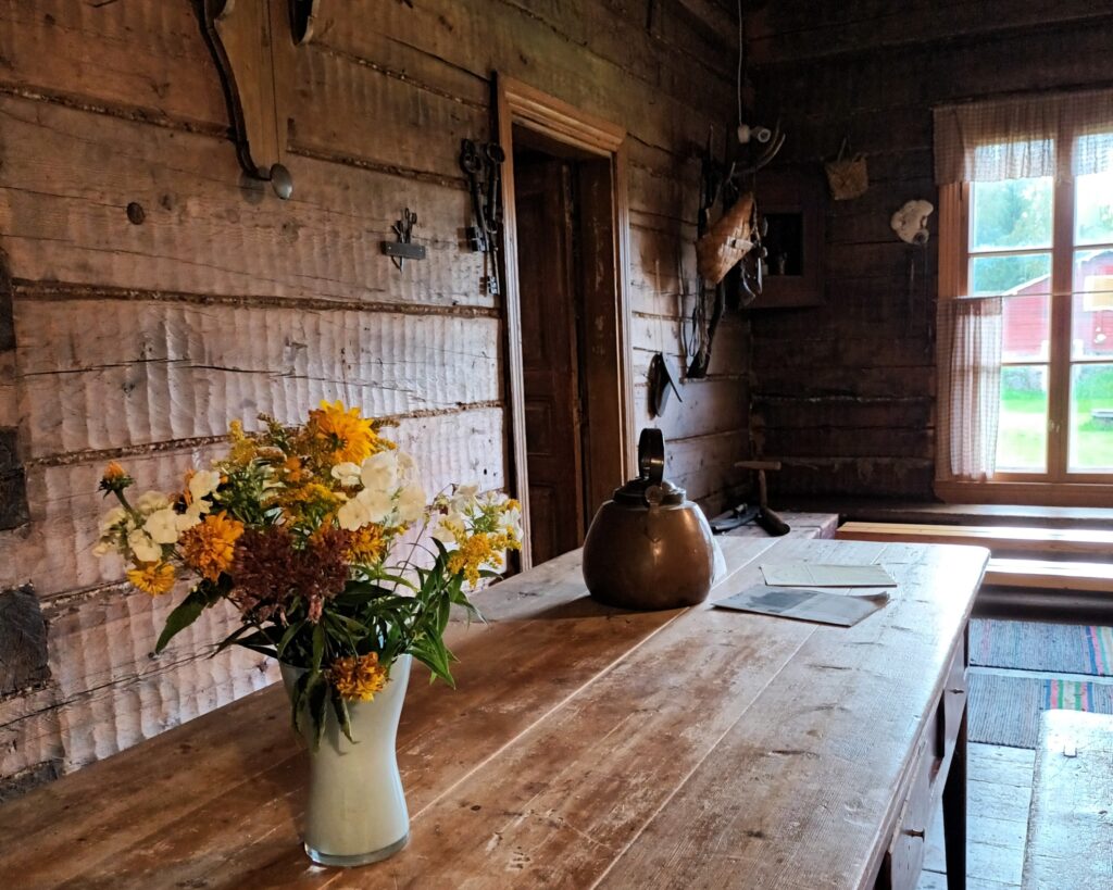 Päärakennus, joka on rakennettu 1800-luvun lopulla, esittelee rakennuksen alakerrassa ja pääpihapiirin alueella perinteistä, paikallista talonpoikaistaloa ja sen asukkaiden elämää 1800–1900-lukujen vaihteessa.